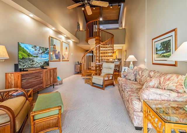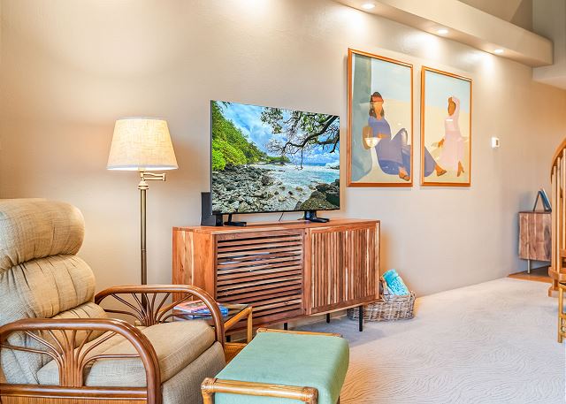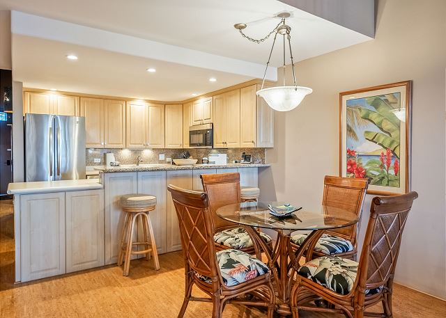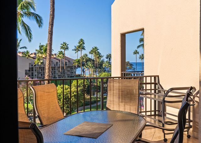 Enjoy the large shaded lanai to relax or dine outside on the large lanai, while taking in the ocean and garden views of the 15 acre tropical resort. The condo is located across the street from one of Maui's nicest beaches which is great for the entire family to enjoy swimming and snorkeling. Within walking distance there are world class restaurants, shopping, and golf courses. The resort has a 24 hour front help desk, internet access at the pool area, and an activities desk. Kamaole Sands is one of the most popular resorts in South Maui as it offers its guests a large pool area, a children's wading pool, 2 hot tubs, an exercise room, table tennis, foosball, 3 pickleball courts, and 2 tennis courts.