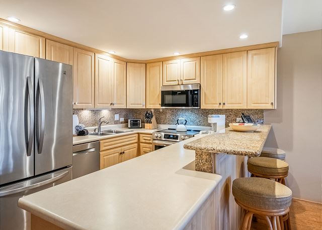 Feel right at home in this nicely updated, well equipped 2 bedroom, 2 bathroom (1188 sq ft.) condo at Kamaole Sands with a premier location, on the top floor of building #2. This condo is managed by PMI Maui, a local Real Estate Brokerage that specializes in vacation rentals. We are located within a mile of the resort and available 24/7. This condo is fully equipped with everything you need to have a great vacation experience. We are committed to provide our guests a clean and sanitized unit, by following enhanced cleaning protocols developed by experts in the health and hospitality industry. Some of the features of the condo include: