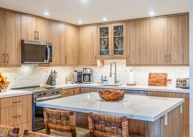 Book with confidence, this newly remodeled (October 2025) 2 bedroom, 2 bathroom (1188 sq. ft) condo. This condo is managed by PMI Maui, a local Real Estate Brokerage that specializes in vacation rentals. We are located within a mile of the resort and available 24/7. This condo offers an exceptional vacation experience with its high end finishes and is fully equipped with everything that you need to have a great vacation. We are committed to provide our guests a clean and sanitized unit, by following enhanced cleaning protocols developed by experts in the health and hospitality industry. Some of the features of the condo include: