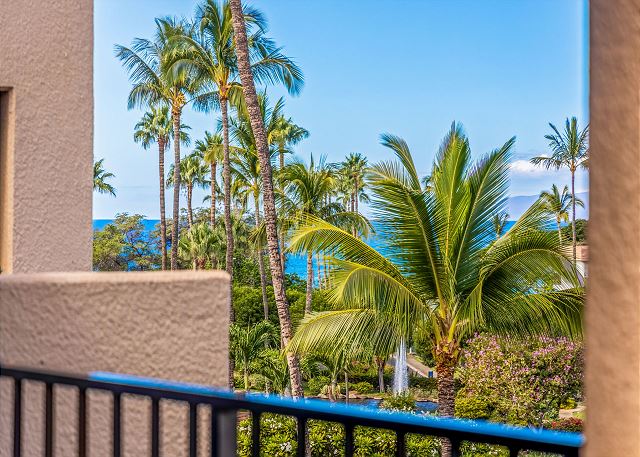The lanai is large, with plenty of room to enjoy sunrise during breakfast or sunset during dinner, and you can see a bit of the ocean from here.