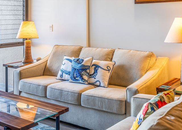 Absolutely LOVED this place! Very comfortable accommodations with plenty of seating, comfortable beds and pleasant temperature with the AC since it was quite warm outside during our stay. Fully stocked with everything you could need, dishes, cookware even condiments in the fridge. Loved having all of the beach stuff too, with beach chairs umbrellas, boogie boards, towels and ice chest, just perfect! Beautiful view from the lanai overlooking the pool with an ocean view as well. Couldn't ask for anything more! Outstanding.