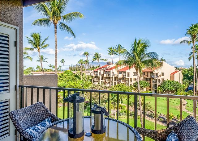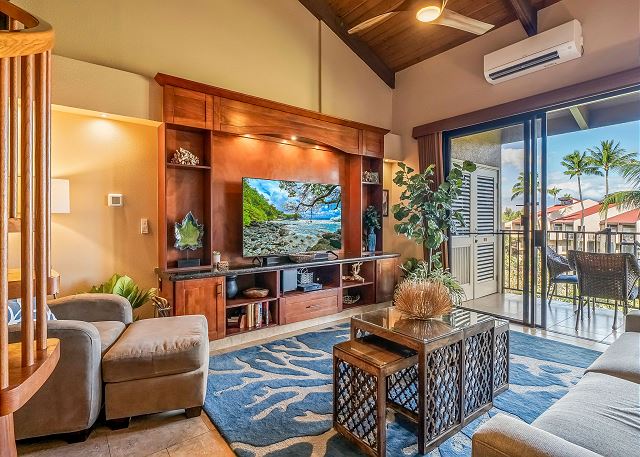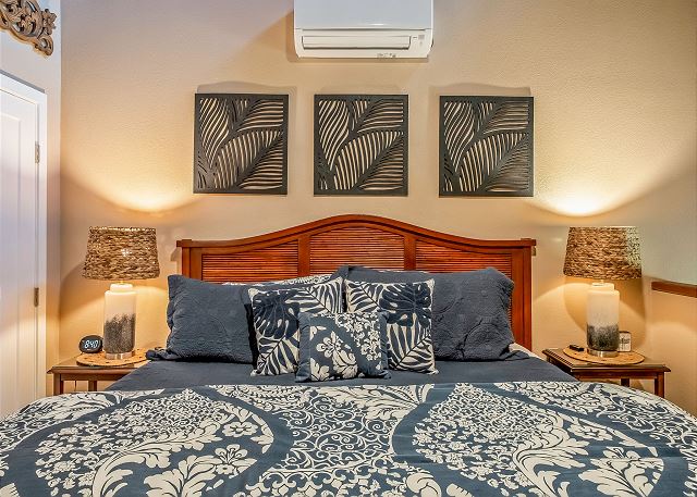 Top floor real air conditioned unit with split system throughout. Great views from deck of gardens and sunset. Unit is well equipped. Will be back again next year. Thx