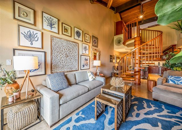 This location is perfect for families of 4. There is a beach right across the street with great snorkeling in the morning and beautiful sunsets in the evening. The condo was well-stocked with everything that you would need to cook a meal with. You have the option of using a Keurig or a drip coffee. There is an ice maker with the refrigerator and an ice machine down by the pool area. The beds were great. The sofa is a little hard and somewhat noisy when you sit down but otherwise fine. The air conditioning is a little tricky. Cooling the separate bedroom was easy but cooling the main space and loft master was more difficult due to turning them off when we left during the day.. The other issue is the island is also your dining table. It worked great for us but If you have small children you might want to eat on the balcony. Overall a wonderful place to stay with beach chairs and umbrellas included. The resort itself is very family-oriented and has a large pool. There are lots of grills, which was really nice. Additionally the owners, Rob and Ron, provide an amazing notebook to serve as your guide to Maui.